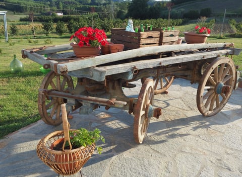 Dit natuurhuisje ligt in het hart van het UNESCO Barbera wijngebied van de Monferatto, aan de voet van een amfitheater van wijngaarden omzoomd met hazelaars en bosschages. De boerderij wordt omringd door siertuinen in Engelse stijl vol geurende rozen en lavendel. De aangrenzende weide staat vol wilde bloemen en is de thuisbasis van hazen, talloze kleurrijke vlinders en een enorme verscheidenheid aan vogels. Vaak zie je een paar herten grazen op de grazige weiden of af en toe een wild zwijn dat naar de rivier beneden loopt voor een welverdiende borrel. Het omringende gebied is allemaal aangewezen als nationaal wildpark met veel wandel- en fietspaden. Er zijn schilderachtige dorpjes en stadjes in de buurt met kleurrijke markten en ambachtelijke winkeltjes. Er zijn ook beroemde cantina's met wijnproeverijen en diverse evenementen. Tijdens de zomermaanden hebben veel dorpen hun festivals waar je plaatselijke gerechten kunt proeven en tot in de vroege uurtjes kunt dansen.