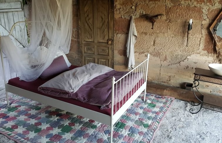 Overnachting in een voormalige schuur. De deur naar de vrijheid, naar het groene landschap kan worden geopend en een adembenemend uitzicht vanuit het bed is gegarandeerd. De kamer is ongeveer 65 vierkante meter groot en zeer authentiek ingericht. Het oude balkenplafond, de zandstenen muren en de oude vloer zijn in originele staat bewaard gebleven. In de schuur staat een tweepersoonsbed en een eenpersoonsbed, dat ook als bank gebruikt kan worden. De kamer heeft ook een leeshoek met een gezellige oude vleugelstoel. Er is ook een tafel met een oude bank en stoel. De badkamer ligt op 20 meter afstand en moet mogelijk gedeeld worden met 1-2 andere gasten. Afhankelijk van of het glazen huis in dezelfde periode wordt geboekt. De prijs heeft betrekking op 2 personen. Elke extra persoon kost 20€ per nacht