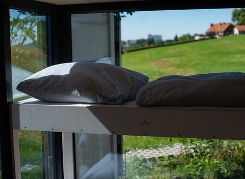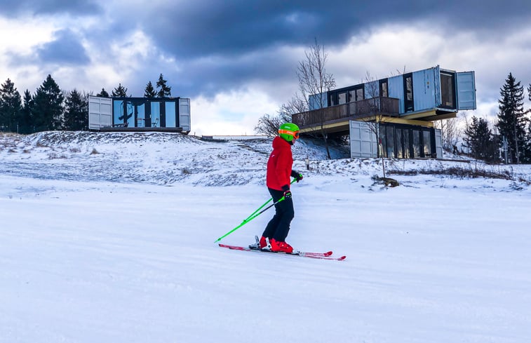 De zeecontainers, omgebouwd tot gezellige berghutten, behoren tot de meest unieke accommodaties in Duitsland. In de modern ingerichte, zonovergoten 12 vierkante meter worden slimme elementen zoals sleutelloze toegang, Wi-Fi en Ipad-besturing gecombineerd met de directe ervaring van de natuur direct buiten het raam van de woonkamer. s Nachts kun je genieten van het uitzicht op de sterren, terwijl je overdag vanaf het terras het fietspad of de skipiste op kunt gaan. Frisse boslucht, ruisende boomtoppen en een panoramisch uitzicht over het Vogtland dat je naar buiten trekt. Welkom in het Bergheim! De Containerlofts zijn je oase van rust, je gezellige basiskamp - midden in de fiets- en ski-wereld van Schöneck, op een van de beste plekken die het kleine Saksische dorp te bieden heeft. Grote vensterpuien brengen weelderig groen en zonlicht direct naar je bed. Geniet 's avonds eerst van het uitzicht op de zonsondergang en daarna op de sterrenhemel en voel je één met de wereld.