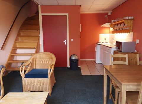 Vakantiehuis voor 2 personen is een eenvoudig maar comfortabel en net vakantiehuisje in een voormalige landbouwschuur, met een prachtig uitzicht. Op de begane grond is de woonkamer, keuken en de begin 2021 vernieuwde badkamer. Het huisje heeft een TV en er is uiteraard gratis Wifi. Op de verdieping een grote slaapkamer met twee comfortabele boxspringbedden en een knusse bedstee met een tweepersoonsbed (140x200cm). U heeft dus de keuze waar u slaapt. Eigen terras en vrij uitzicht op het grote speelveld en omliggende landerijen.