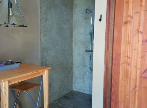 Dit natuurhuisje is gesitueerd in ons huis. Ons modern huis is gebouwd van kleine strobalen, aan de binnenzijde met leem gestuct. Het huis is gelegen bij ons melkveehouderijbedrijf. De B&B betreft een kleine, eenvoudige slaapkamer. Met eigen douche op de kamer en net buiten de slaapkamer een eigen toilet. In de zomer kunt u via openslaande deuren gebruik maken van een heerlijk terras met ochtend zon. De entree is via onze schuur. Er is een mogelijkheid om uw elektrische fiets te stallen in de schuur en op te laden. Er is voldoende parkeergelegenheid. Er is geen tv aanwezig wel WIFI. Er zijn verschillende gezellige restaurants in de buurt. Er is geen kookgelegenheid op de kamer. Buiten de kamer staat een klein koelkastje voor uw gebruik en waar smorgens op de tafel het ontbijt klaar staat. In overleg is uw hond van harte welkom. De drempelloze kamer is op de begane grond. Het bed is 2m lang * 1.70m breed met tempur matrassen. In overleg is eerder in of uit checken mogelijk.